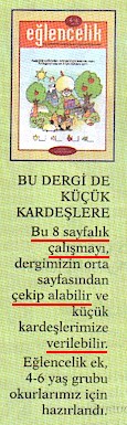 "Bu 8 sayfalık çalışma, dergimizin orta sayfasından çekilip alınabilir ve küçük kardeşlerimize verilebilir."