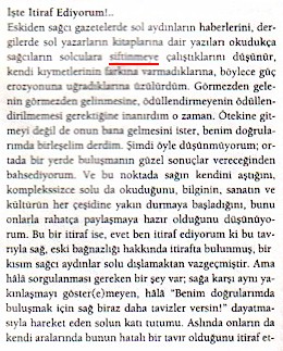 Lâkin, ey azizler, işbu serlevhanın nihâyetinde bir yıldız işâreti ve o işâretin bizi götürdüğü yerde şöyle bir cümle vardır: "Bu yazı aydın bilinci taşıyan kişilerin "öteki"ne karşı tutumunu eleştirir ve aynı tarihte öteki dergide de yayınlanmıştır."