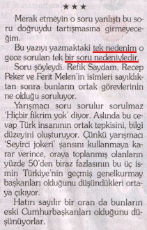 Serdar, soru işaretine hususi bir "alerji" duyuyor olmalı ki, istifham cümlelerini "nokta" ile noktalayıveriyor. Şuna bakın: "Başarısızlık nerede. O soruda ismi geçenler bu süreçte nasıl yer aldılar, neler yaptılar, onların kabahati var mı olan bitende."