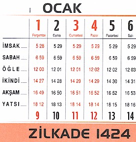 Kartonun alt kısmına ise on iki parça kâğıda on iki ayın günleri ve dahî namaz vakitleri yazılmış. Üstde gayet tabiî Ocak 2004 var. İşte ey azizler, arz etdiğim kesikde siz ol kâğıdın baş kısmını görmekdesiniz.