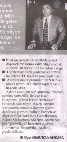 Maznun müteahhidin ma'rifetleri sayılır iken denmiş ki: "granit döşemelerde fatura sahteciliği yapmak suretiyle 30 trilyon fazladan aldığı", "Hafriyatları fazla göstermek suretiyle 64 trilyon TL fazla kazanç sağladığı", "Alüminyum doğramalardan 9 trilyon olmak üzere 100 trilyon toplam fazla hak ediş aldığı" yazılmış ya, ben bu "toplam" kelimesinin yerini beğenmedim. Bir de üşenmeyip verilen rakamları topladığımda; 103 trilyon çıkdığını etdiğini gördüm. Şimdi bu haberi böylece yazan Oya Armutçu toplama işlemini mi bilmemekdedir, yoksa "3 trilyon"u "3 trilyoncuk" deyû küçümsemekde midir? İşte bunu bilemedim ey azizler. Bir de tabi'î şu cümlenin sakatlığı dikkatimden kaçmadı: "Askeri savcılığın soruşturmayı, 'rüşvet, evrakta sahtecilik, ihaleye fesat karıştırma, görevi kötüye kullanma' iddiasıyla yürütüyor." Oya kız, bu cümleye başlar iken tamlama ile başlamış, lâkin tamlamayı tamamlamayı unutuvermiş. "Askeri savcılığın... yürüttüğü öğrenildi." filan deyeceğidi herhâlde amma deyememiş işte. Yazdığını okumağa vakti olaydı, cümlesini şöylece tashîh edebilirdi: "Askeri savcılık soruşturmayı, 'rüşvet, evrakta sahtecilik, ihaleye fesat karıştırma, görevi kötüye kullanma' iddiasıyla yürütüyor." Edememiş.