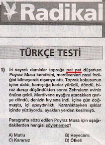 Bugünkü kesikimiz cerîde-i Radikal'in, 16 Ocak 2003 târihli nüshasının 18. sahîfesinde neşrolunan "Anadolu Liselerine Hazırlık" suallerinin baş kısmını göstermekdedir.