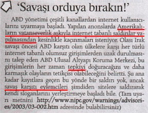 M. Serdar Kuzuloğlu ol gazetenin internet versiyonunu hazırlamakla kalmayor, haftada bir de bu sahîfeyi dolduruyor. İşbu kesik de 17 Şubat 2003 nüshasının birinci sütûnunun dibinden kesildi.